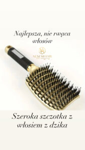 Następnie delikatnie rozczesać kucyk szeroką szczotką z włosiem z dzika bądź dłonią.
