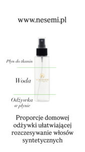 By zrobić domową odżywkę ułatwiającą rozczesywanie włosów należy połączyć letnią wodę z odrobiną płynu do płukania tkanin oraz odżywką w sprayu z drogerii.