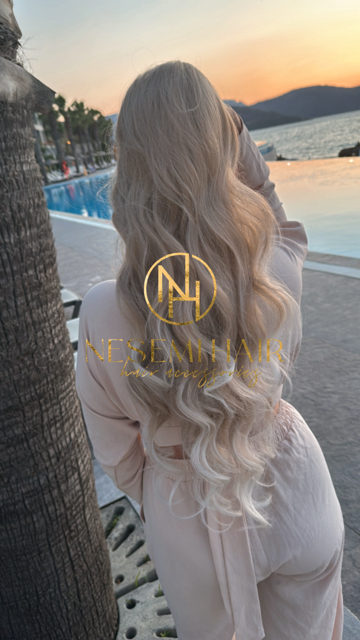 Kolor Perłowy blond z platynową końcówką, długość 70 cm, 180 g