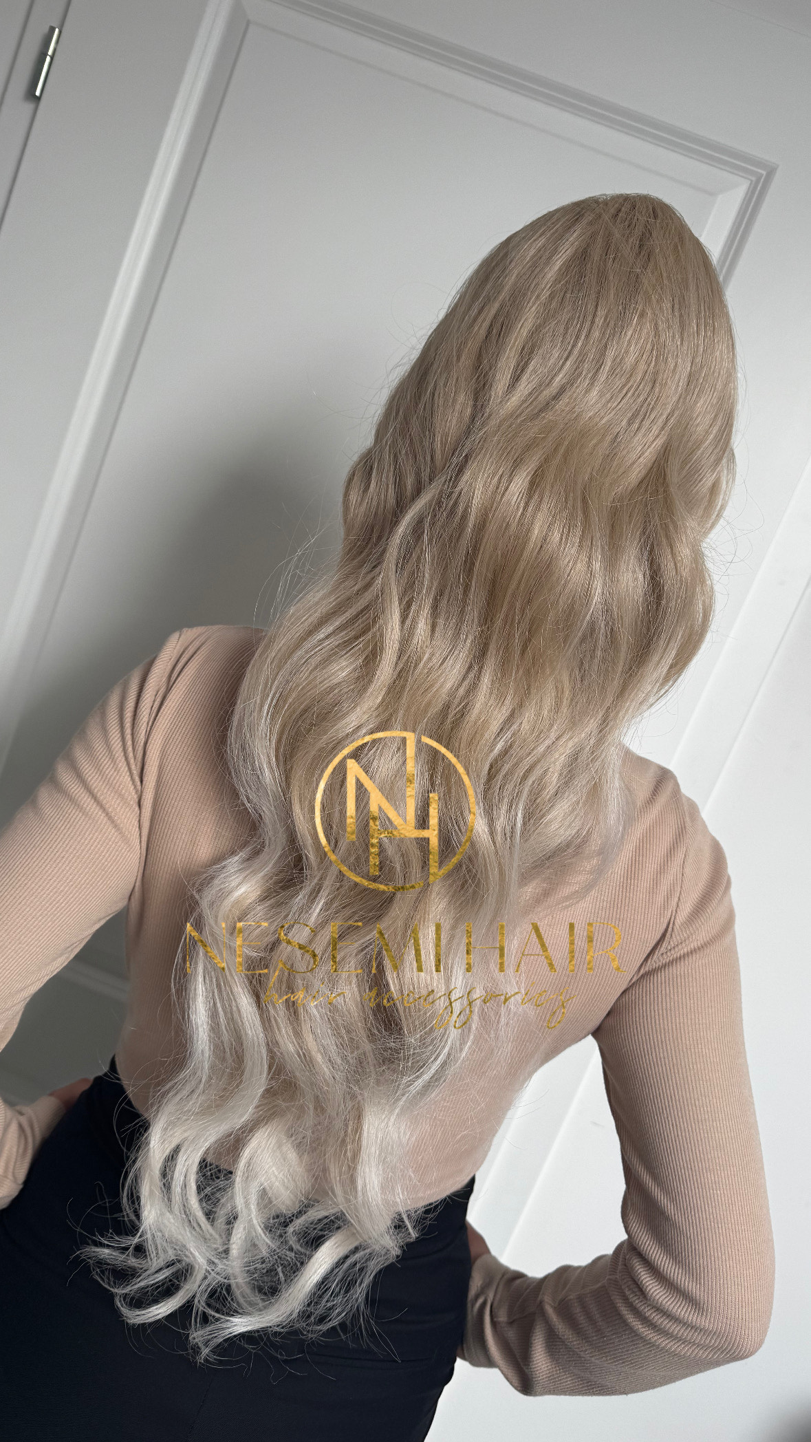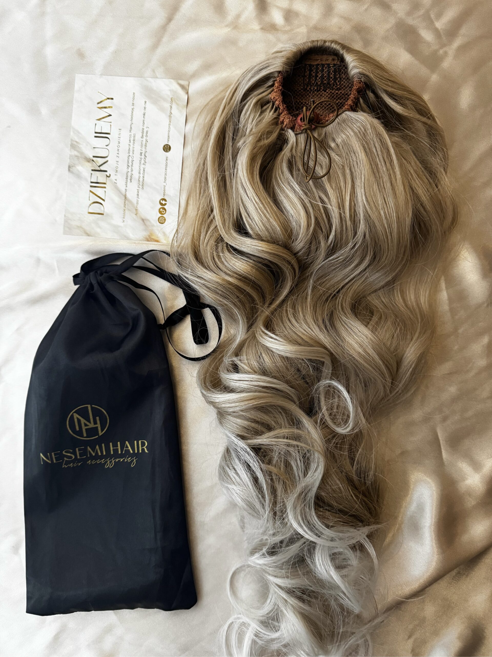 Kolor perłowy blond z platynową końcówką, długość 70 cm, 180 g