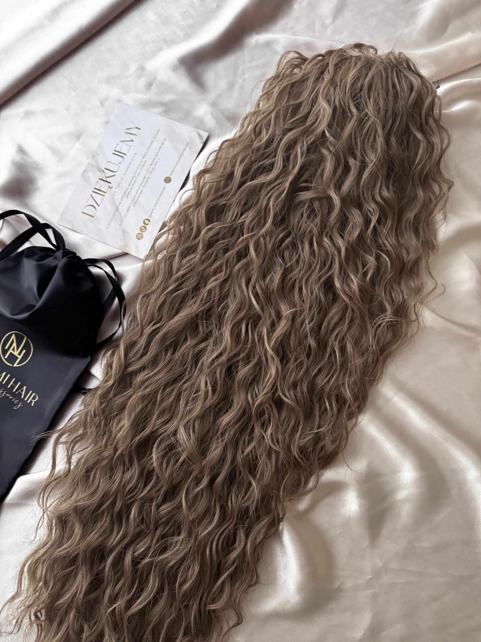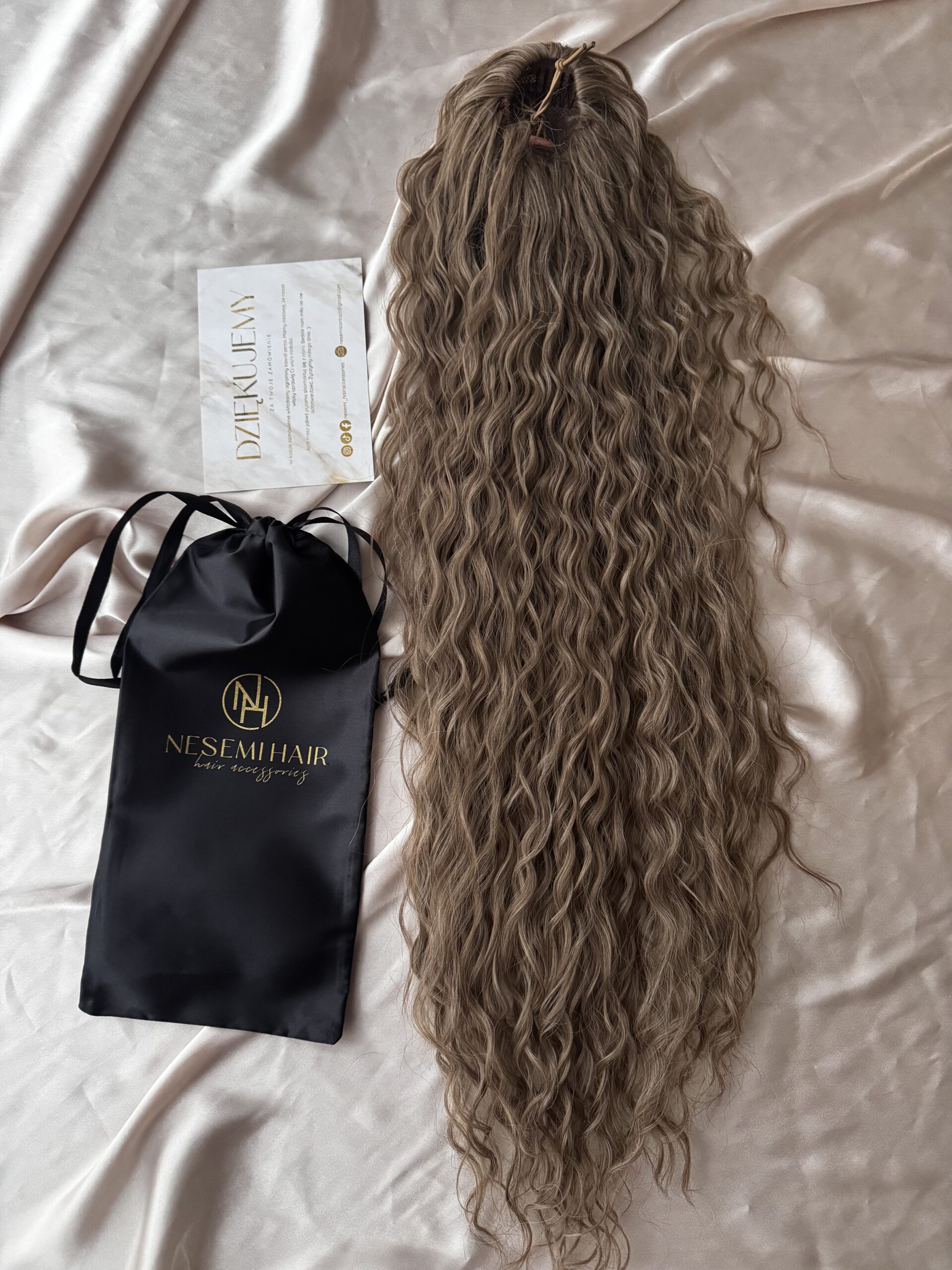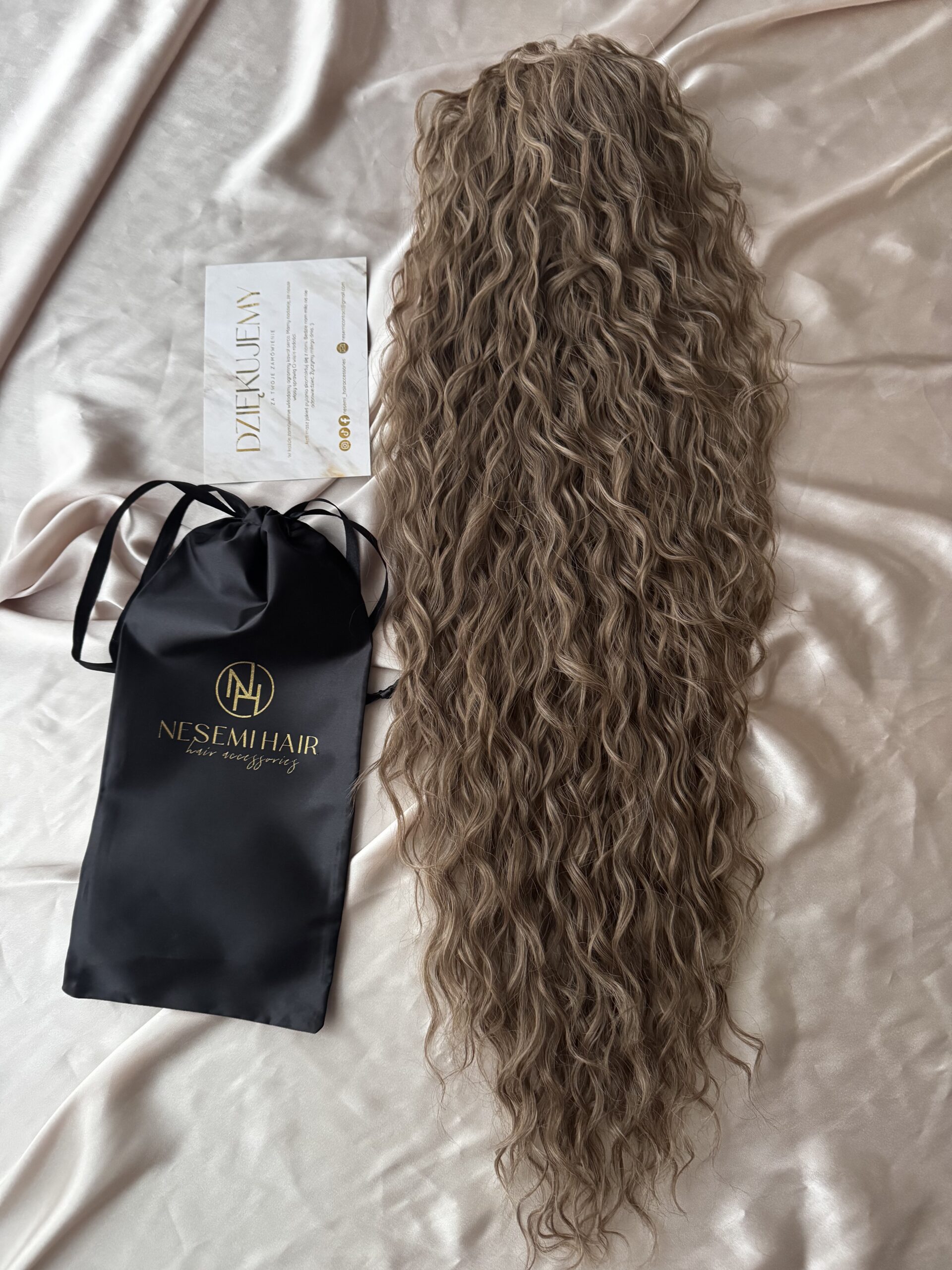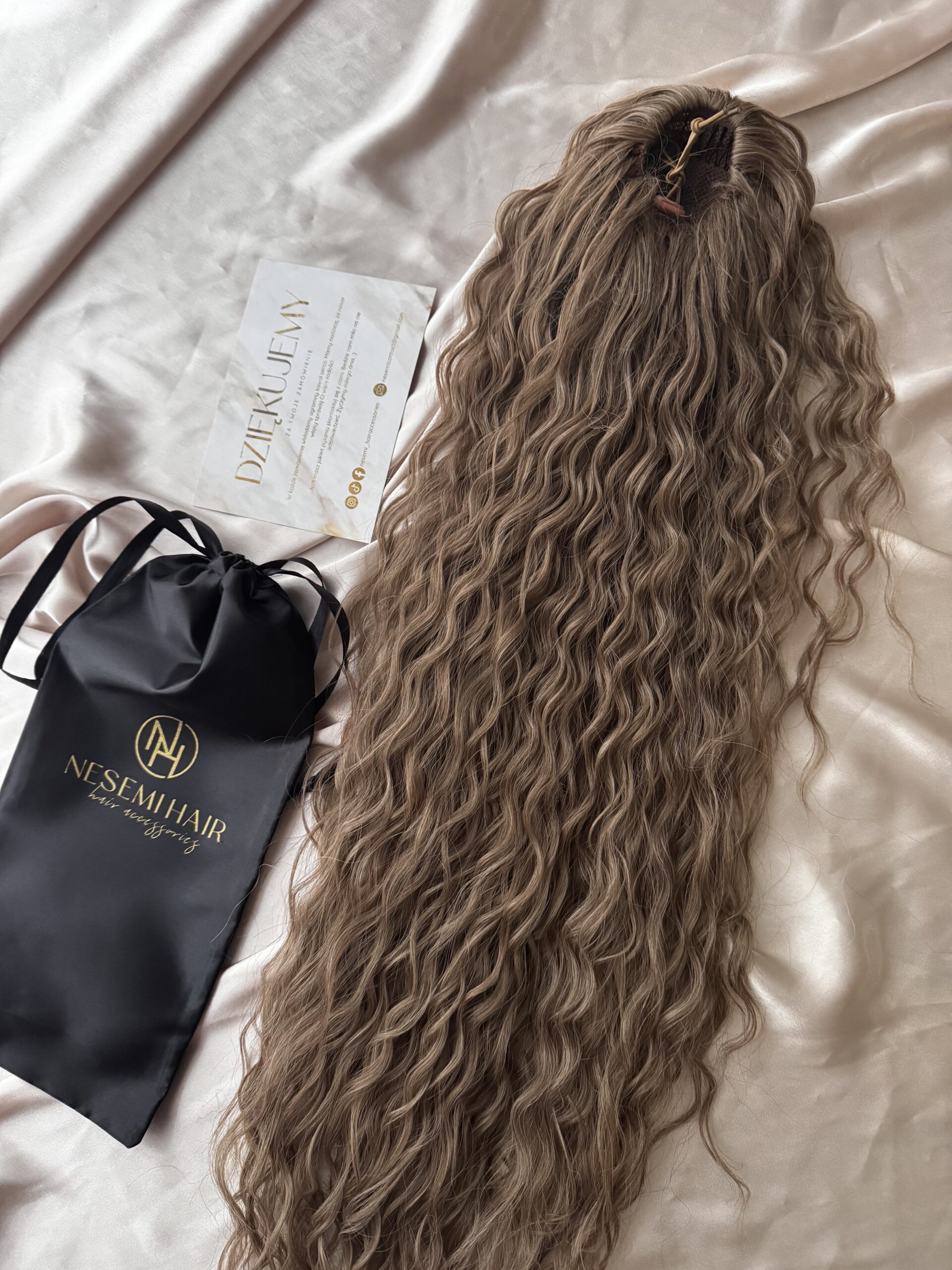 Aby włosy się nie plątały należy je przechowywać w siatce i woreczku satynowym dołączonym do zestawu.